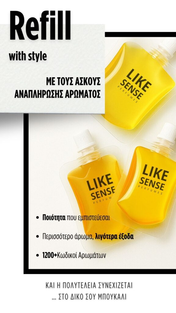 Βρείτε την τέλεια έντασή σας. Είτε προτιμάτε τη λεπτή γοητεία του Eau de Toilette είτε την διαρκή κομψότητα του Eau de Parfum  τα αρώματα της Like Sense  ανταποκρίνoται στις επιθυμίες σας, δίνοντάς σας τη δυνατότητα να ορίσετε τη μοναδική κομψότητα σας.